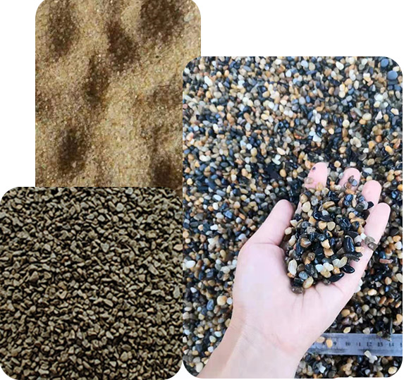 石英砂、天然海砂、鵝卵石、粉煤灰、鋼渣、米石、錳砂、景觀石等材料 / 濾料,多種規(guī)格,精選品質(zhì),豐富案例,快速運(yùn)輸,滿足您的定制需求。